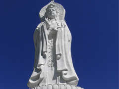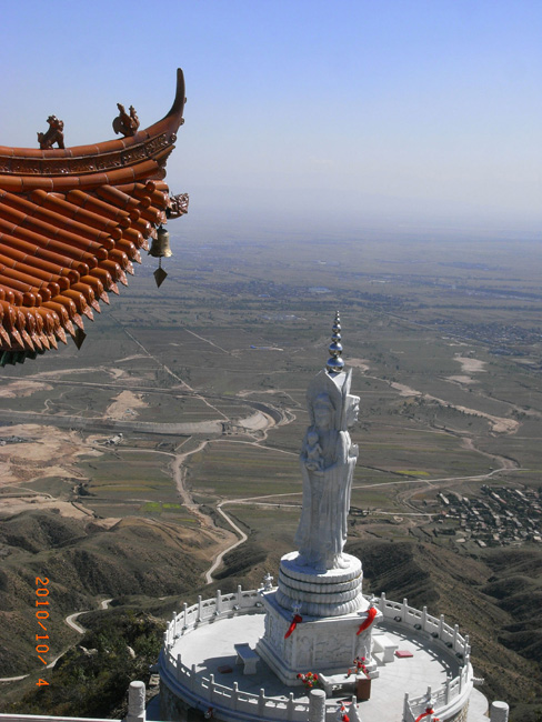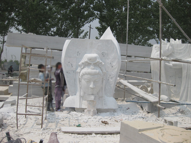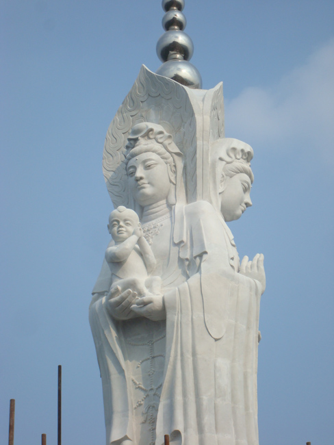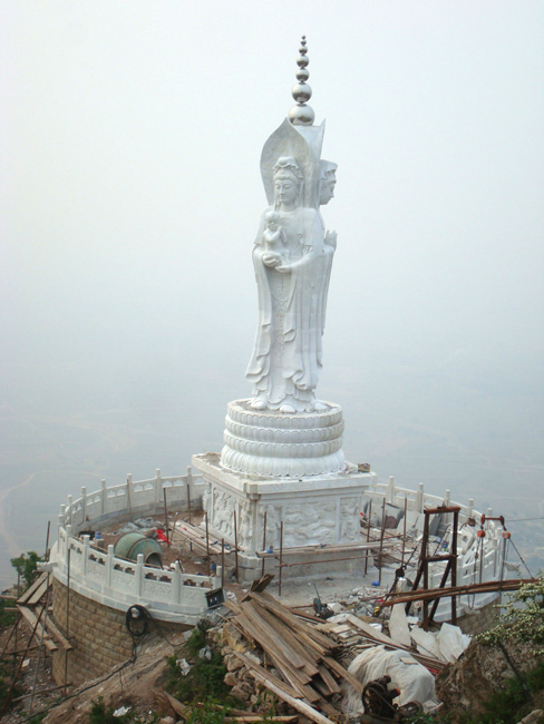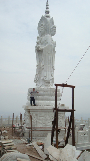 山西省懷仁縣清涼山2010安裝漢白玉雕塑三面觀音雕塑。底座三米八高,觀音十二米高,總高15.8米,材質(zhì)用北京房山漢白玉由漢白玉雕刻,三個方向分別是送子觀音,凈水觀音,如意觀音三個面孔,面向登山道路的一面是送子觀音的形象。