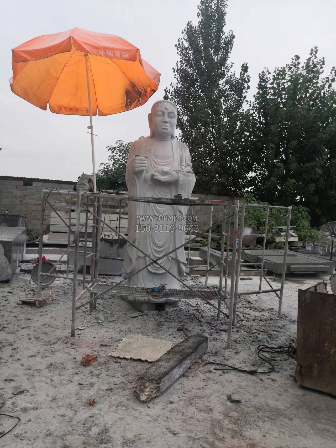 地藏王菩薩像,花崗巖手工雕刻制作而成,凈高3.68米。項目位于四川,由一信眾捐獻制作。